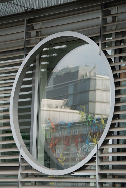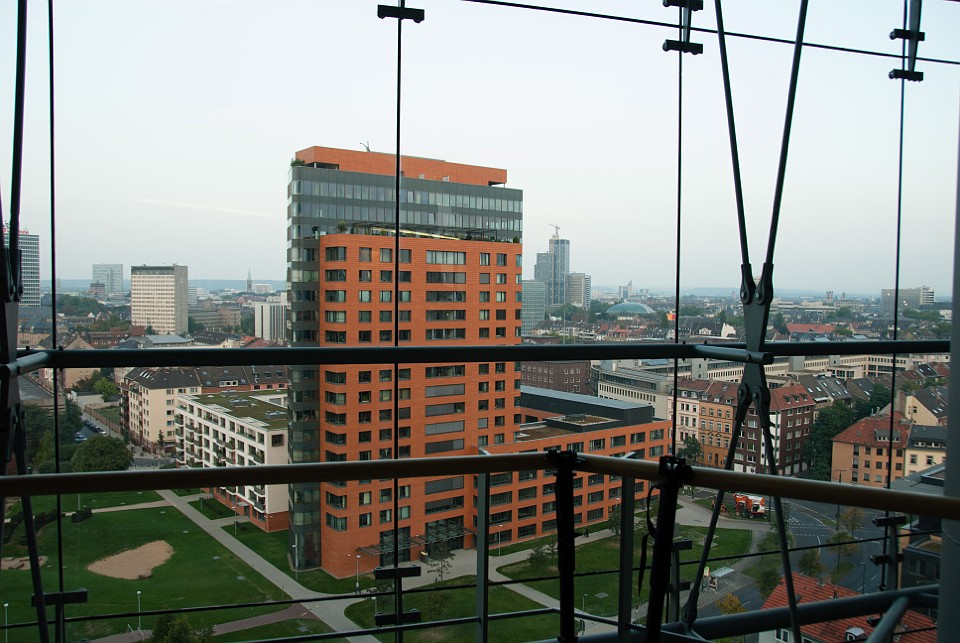 Blick durch die Gehrys auf das Stadttor.