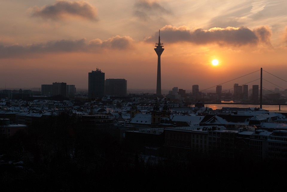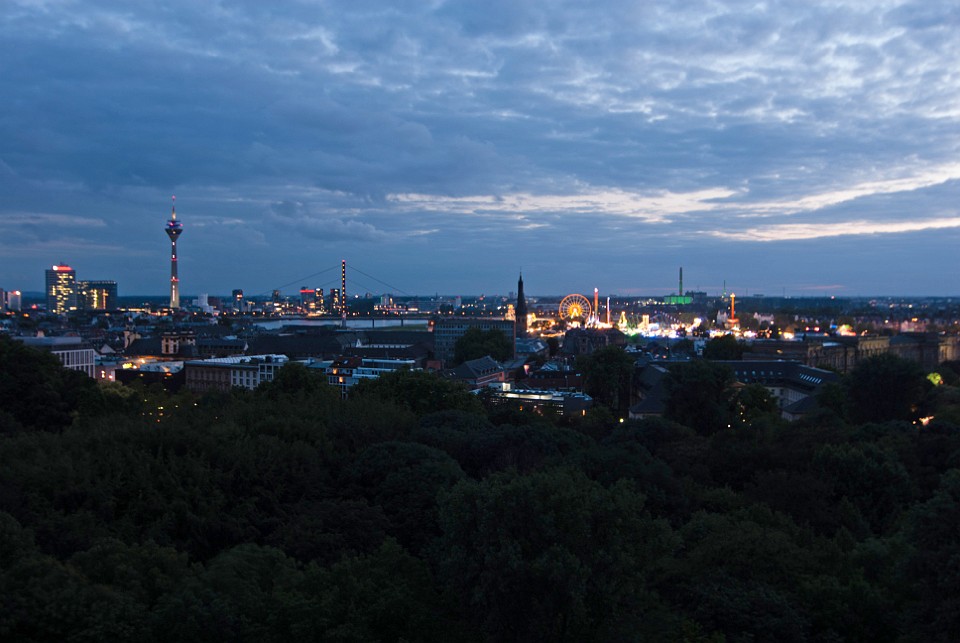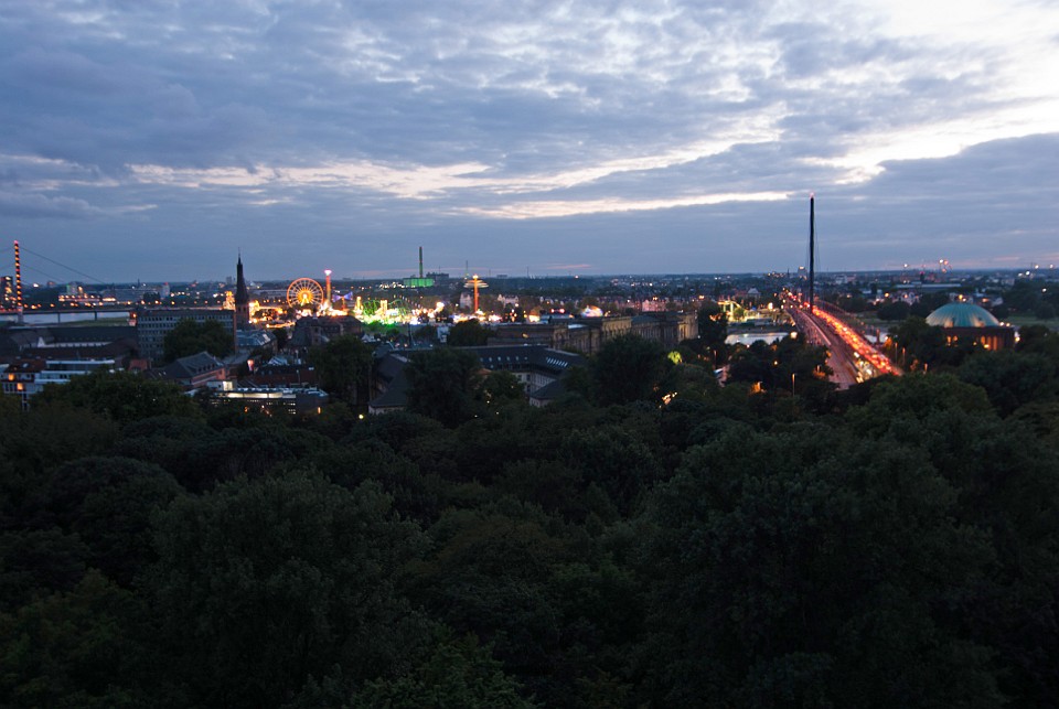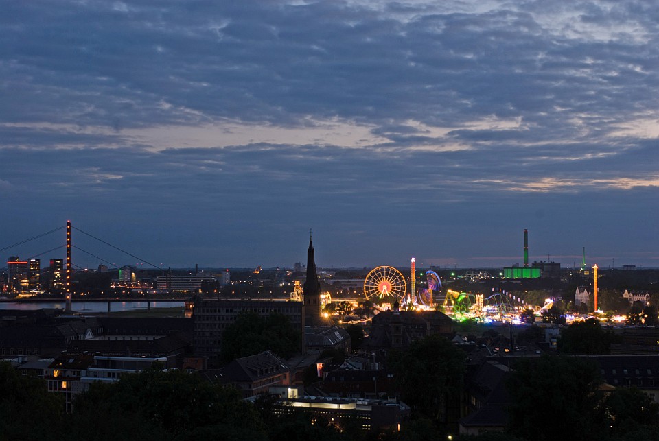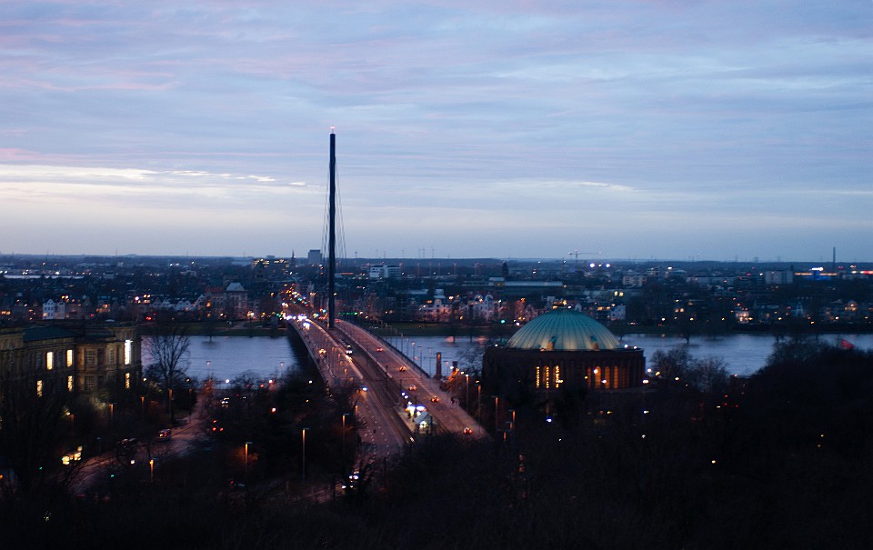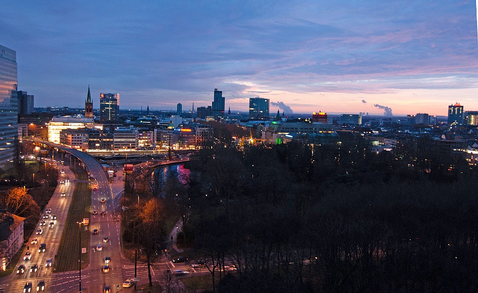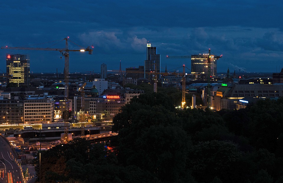 Tausendfüßler, Baugrube des "Kö-Bogens" und Blick in die Innenstadt.