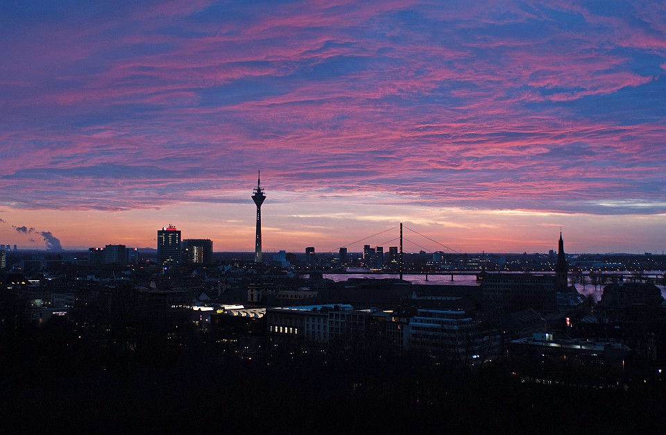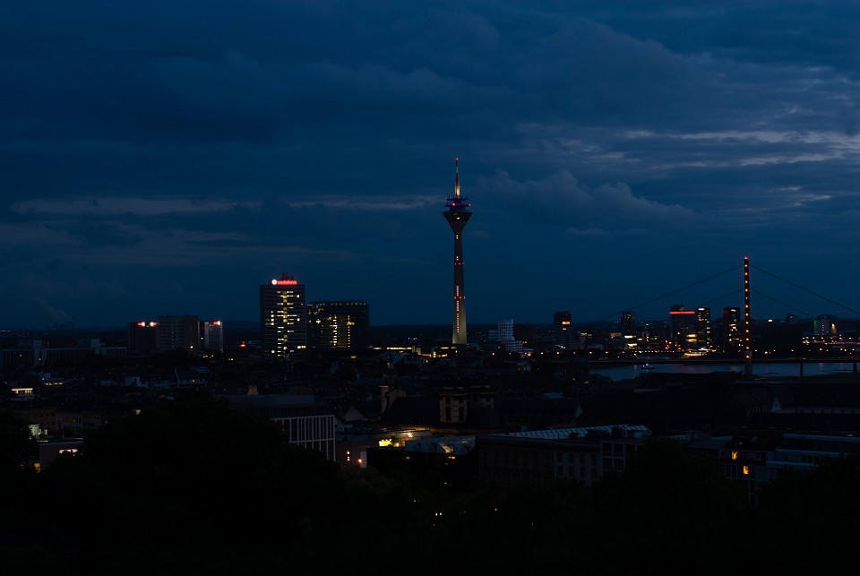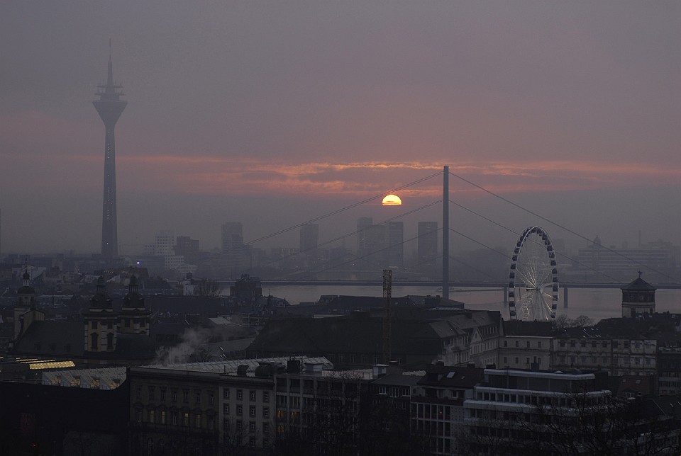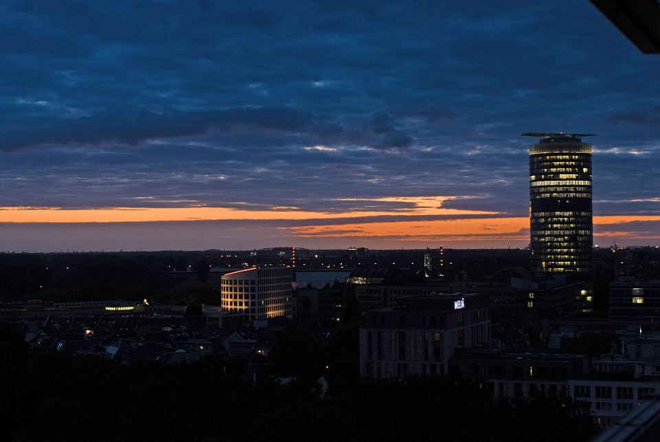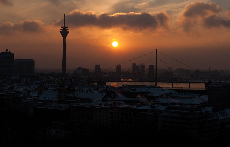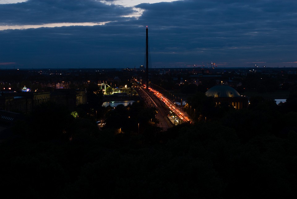 Tausendfüßler, Baugrube des "Kö-Bogens" und Blick in die Innenstadt.