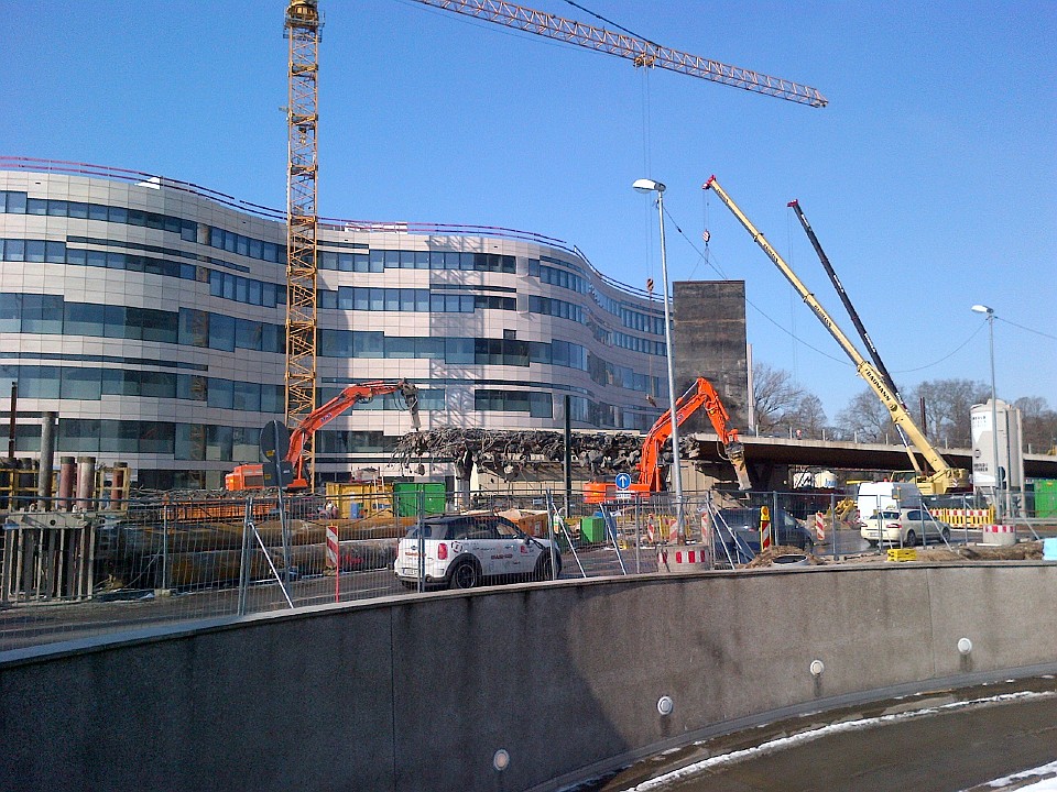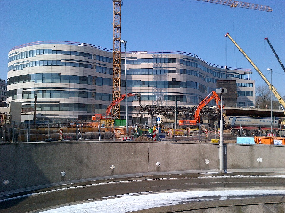 Düsseldorf-20130313-00164 Düsseldorf-20130313-00163  Und der Kö-Bogen bildet ein neues Wahrzeichen von Düsseldorf. Düsseldorf-20130313-00162  Der Tausendfüßler fällt. Düsseldorf-20130318-00165