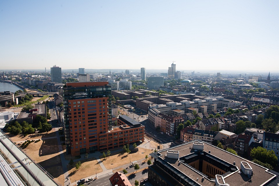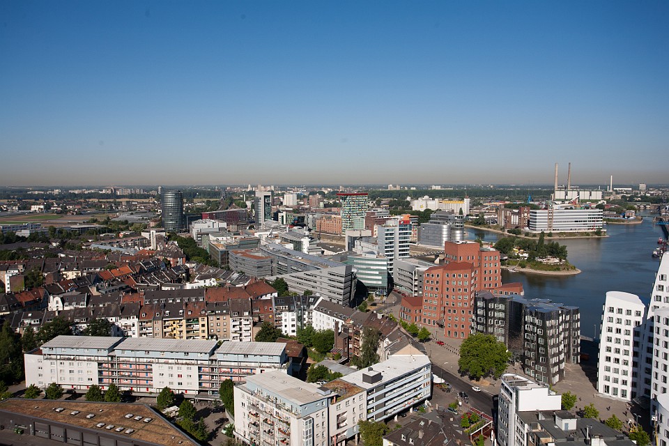 005 006  Die Fleher Brücke im Dunst. 007 : Düsseldorf, Medienhafen, Stadttor, von oben 008 : Düsseldorf, Medienhafen, Stadttor, von oben