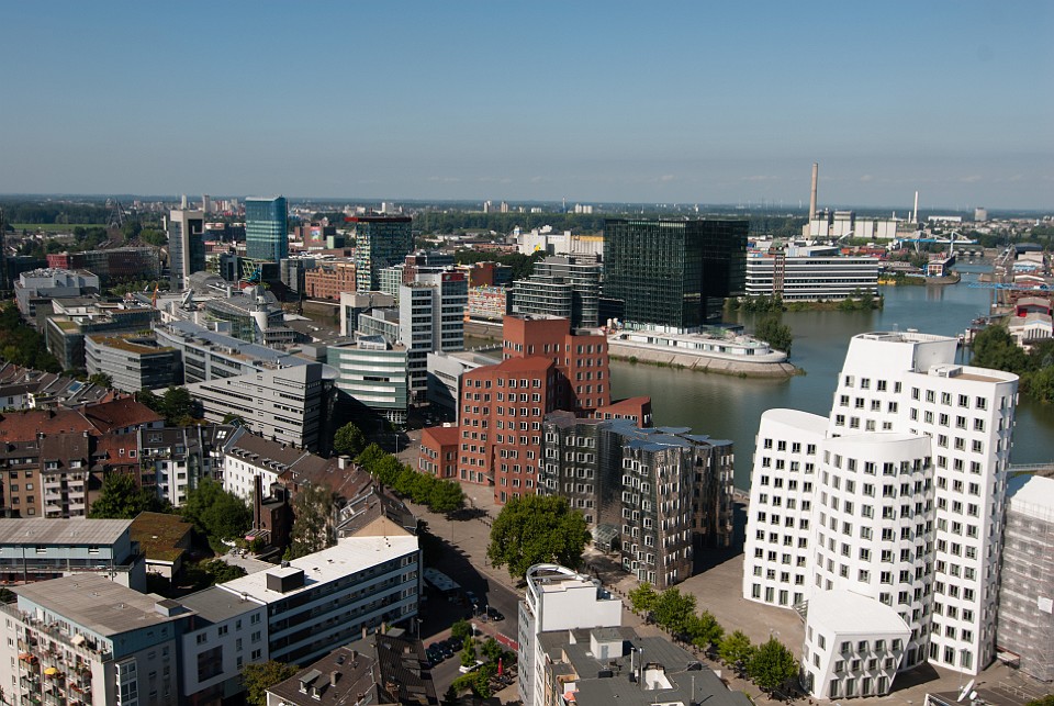 001  Düsseldorf "von oben". : Düsseldorf, Medienhafen, Stadttor, von oben 002 003 004