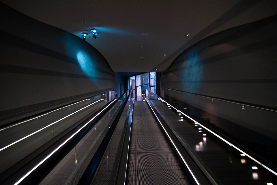 4 Mit einer Rolltreppe gehts zum Empfang.