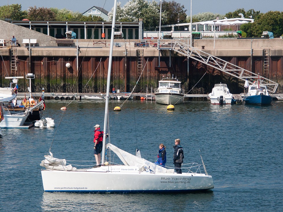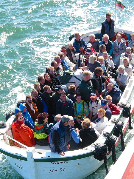 Gelandet wird auf der Düne, dann geht es mit der Fähre rüber nach Helgoland.