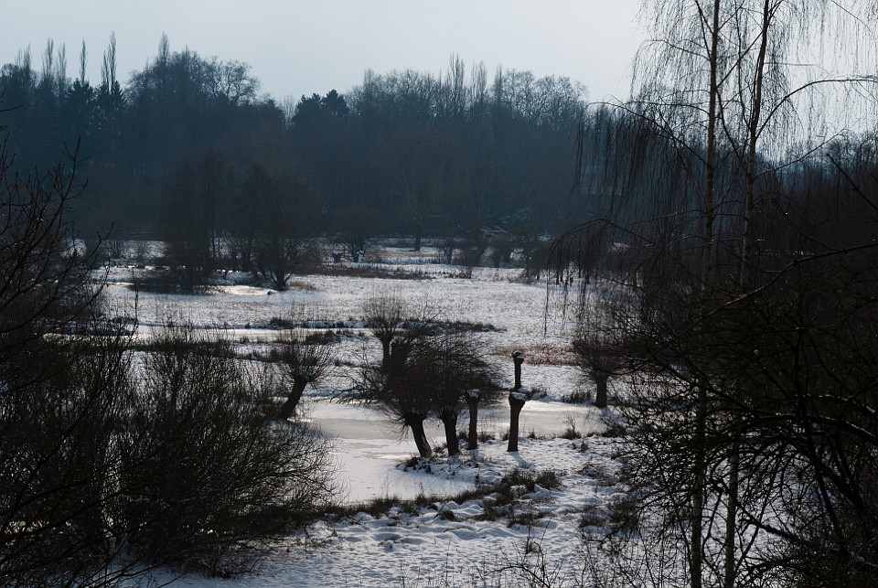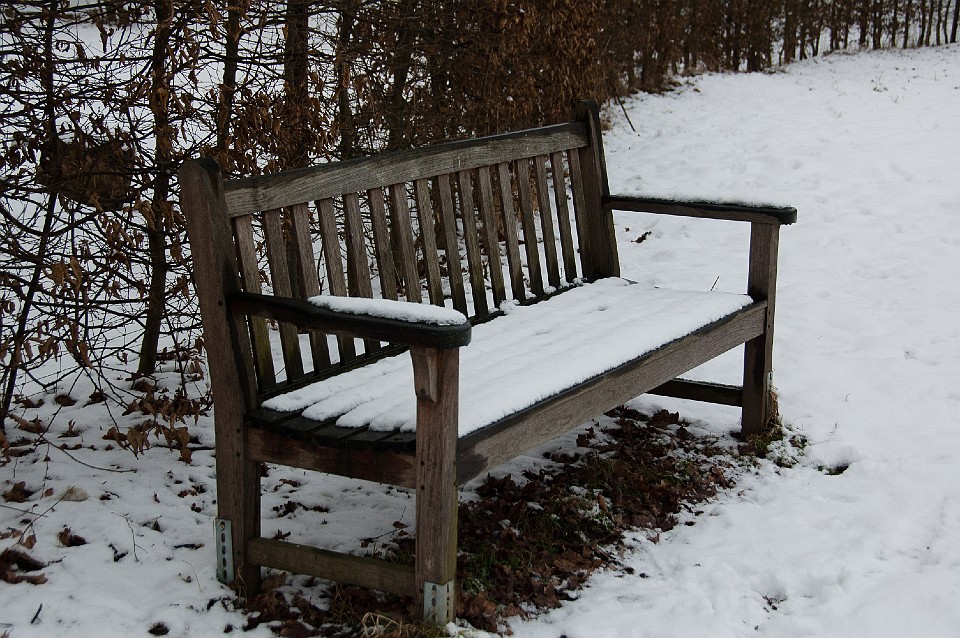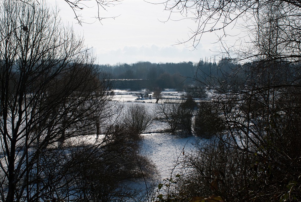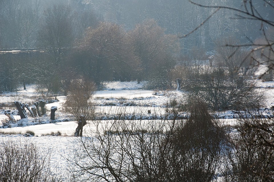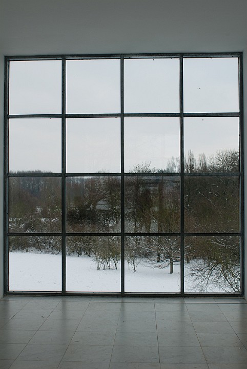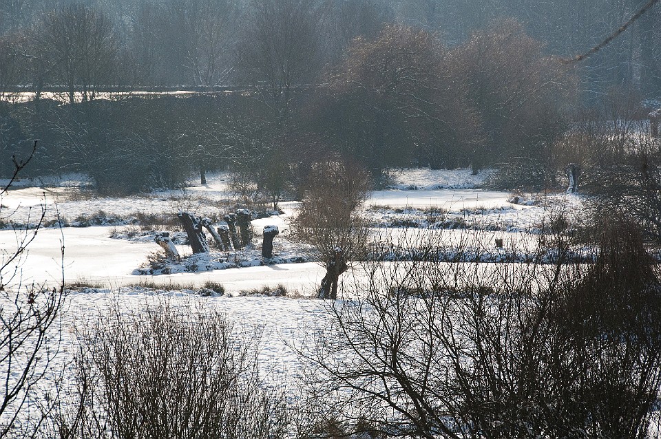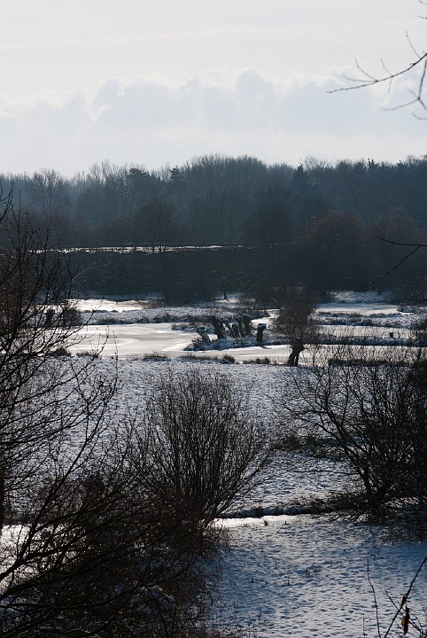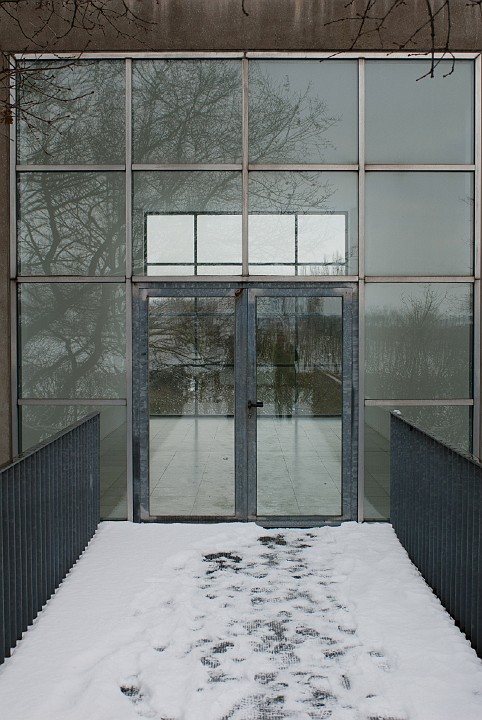 Blick vom Eingang auf die schneebedeckte Ölgangsinsel.