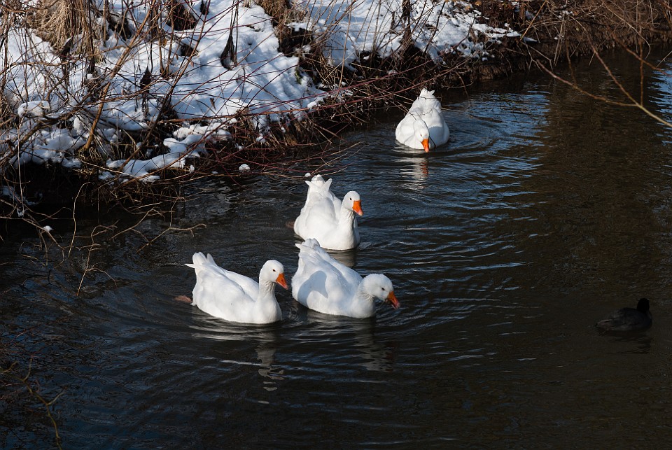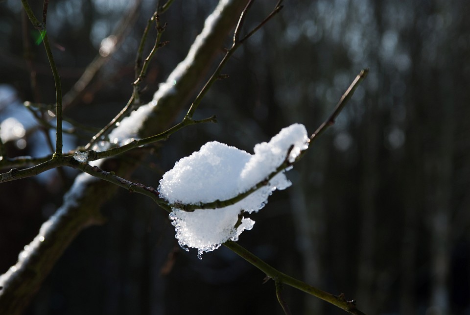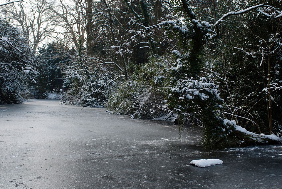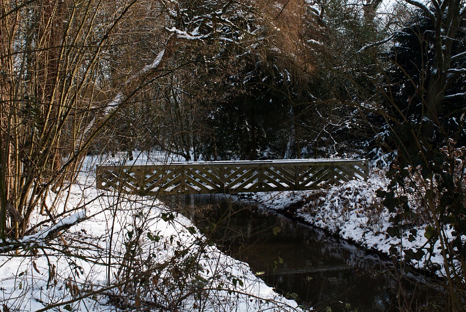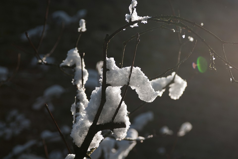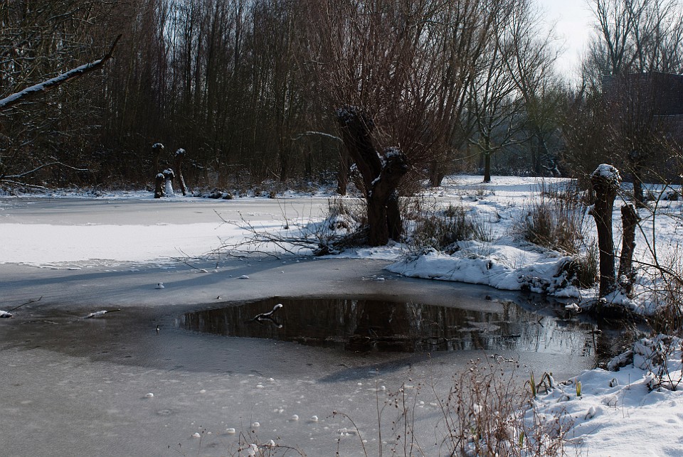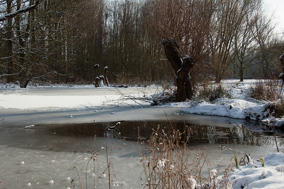 Blick vom Eingang auf die schneebedeckte Ölgangsinsel.